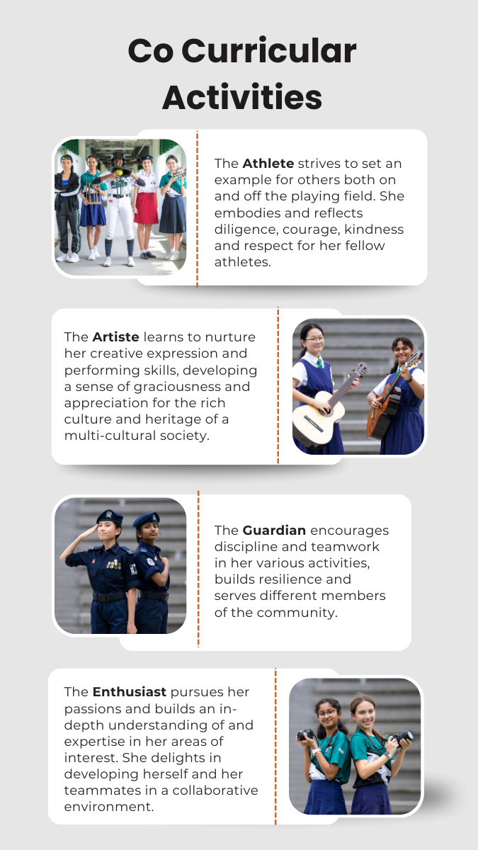 CCA participation is compulsory for all of our students. While we strive to meet their diverse needs, there is a quota in the number of members a CCA can offer to ensure that the quality of learning and safety of our students are not compromised.