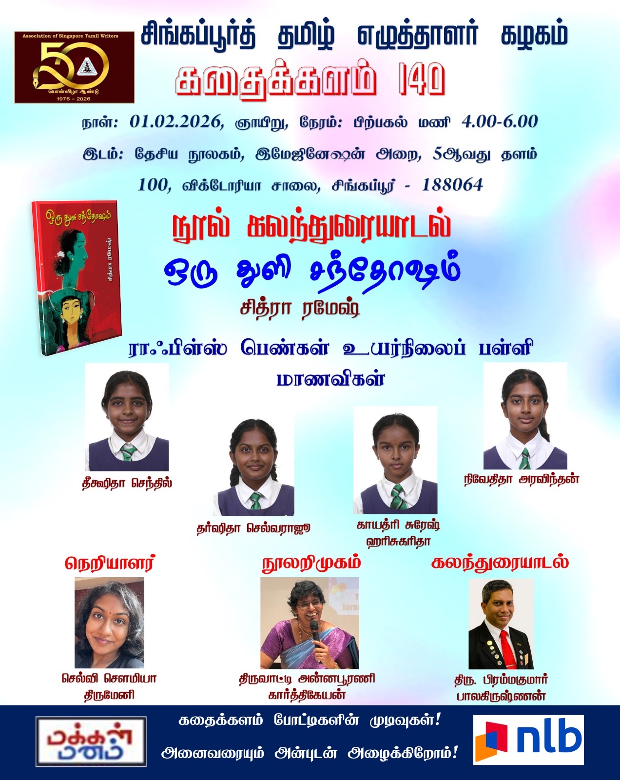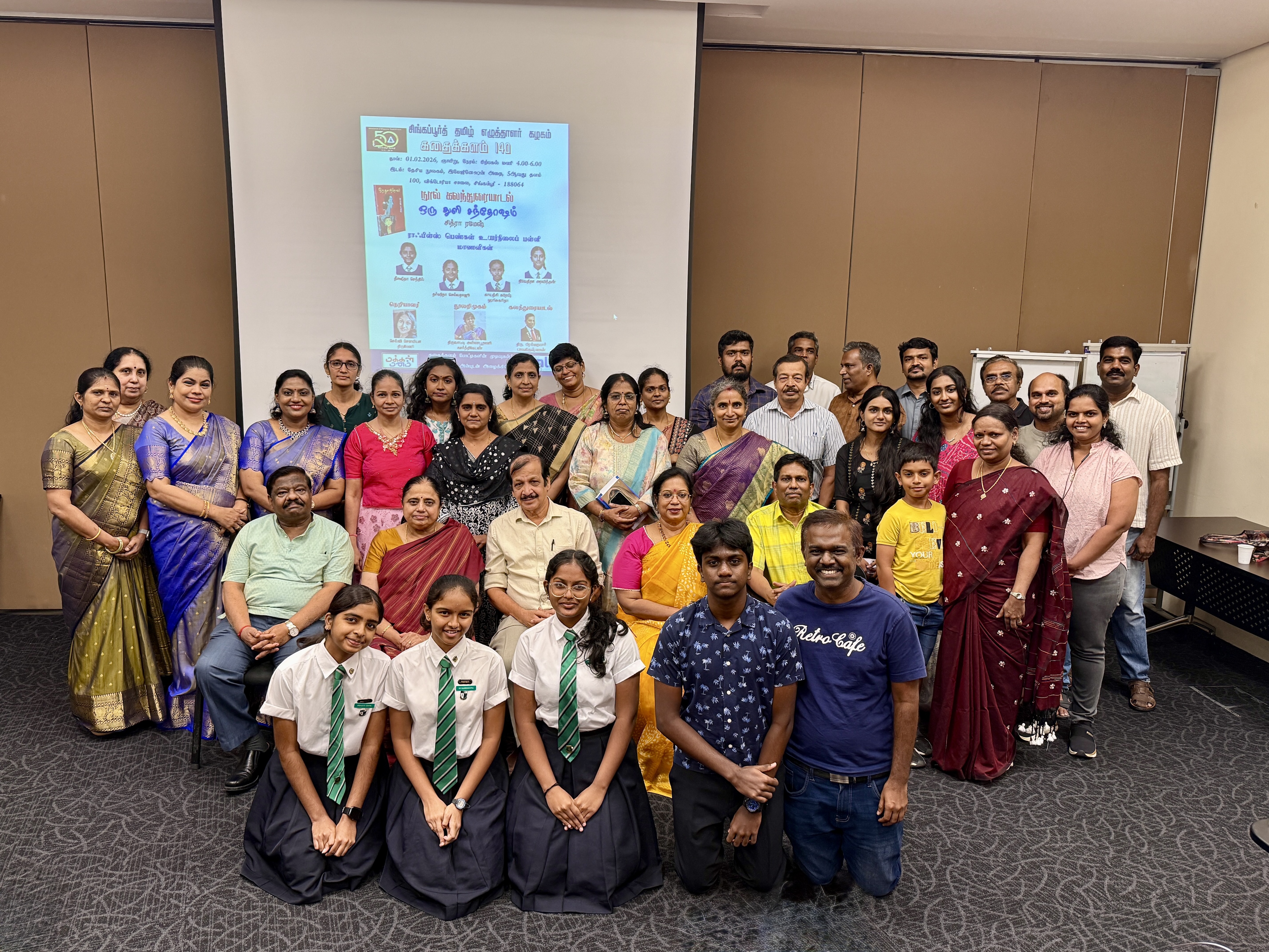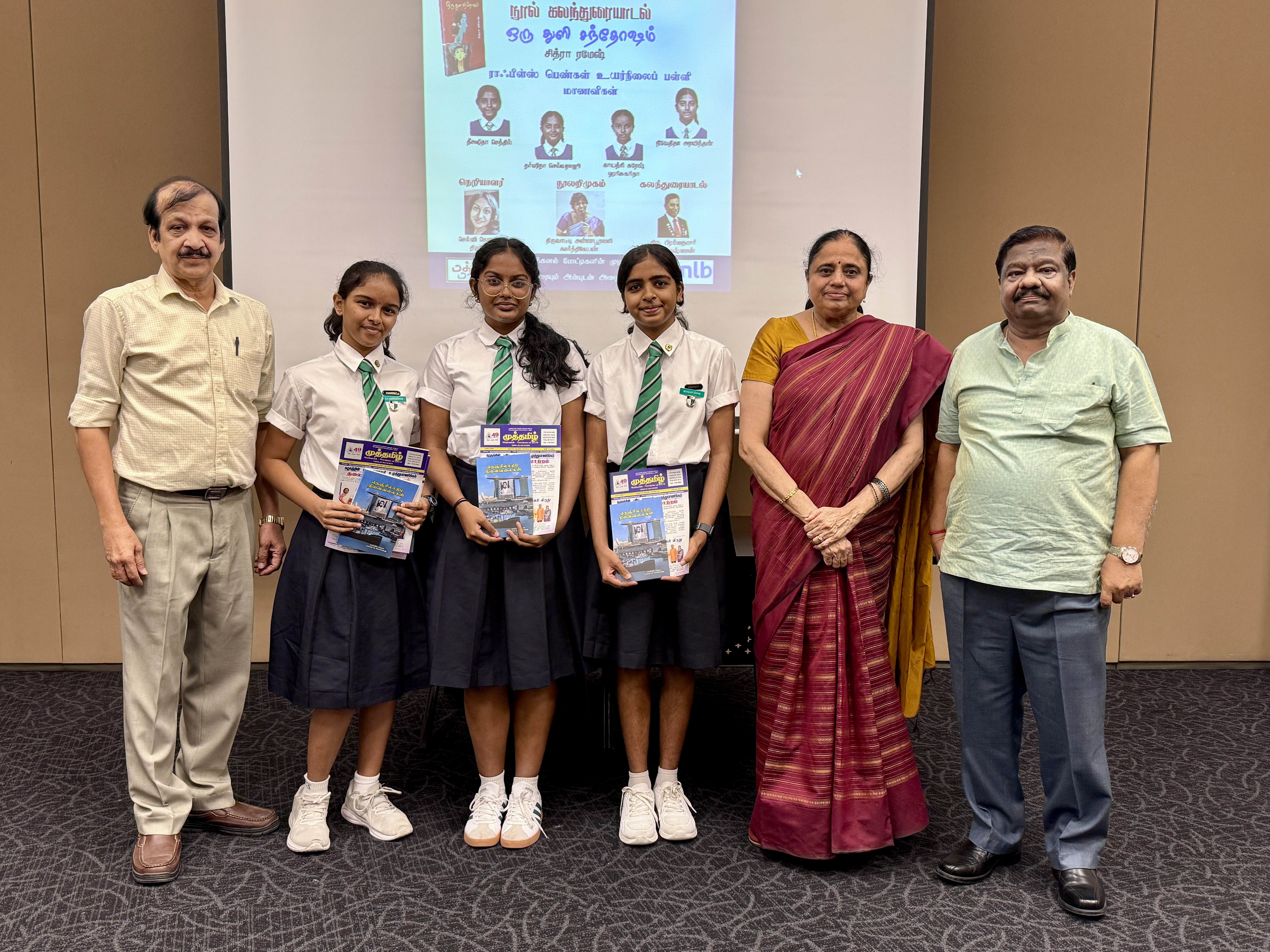 Deekshitha Senthil, Dharshitha Selvaraju, and Gayathri Suresh Harisukarita presented their reflections on Oru Thuli Santhosham (A Drop of Happiness) by Chitra Ramesh, contributing thoughtfully to the literary discussion alongside members of the Tamil literary community.