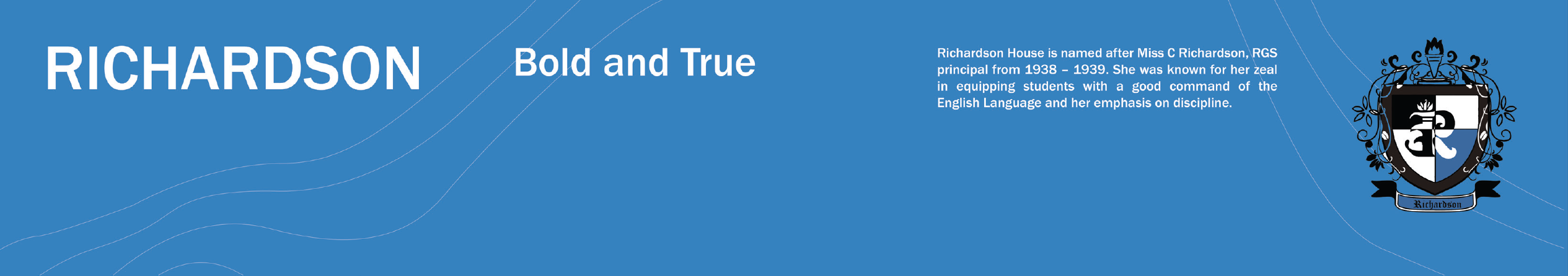 Richardson House is named after Miss C Richardson, RGS principal from 1938 – 1939. She was known for her zeal in equipping students with a good command of the English Language and her emphasis on discipline.